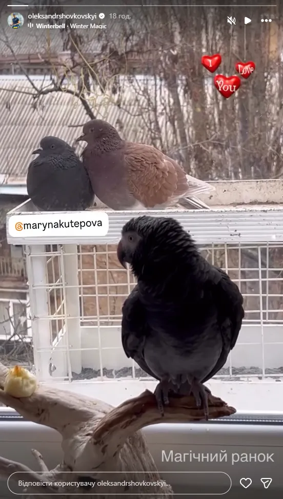 А тим часом сам Шовковський насолоджується сімейним життям та на своїй сторінці у соцмережі Instagram виклав фото трьох птахів, відзначивши акаунт Марини Кутепової, його дружини.