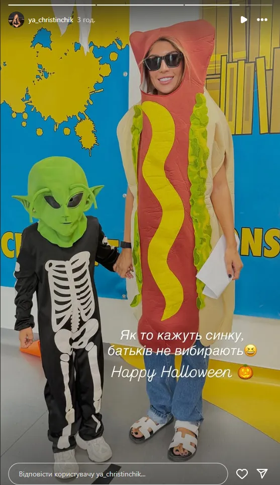 Скелет-інопланетянин і хот-дог в окулярах: обраниця Яремчука показала костюми на Хелловін