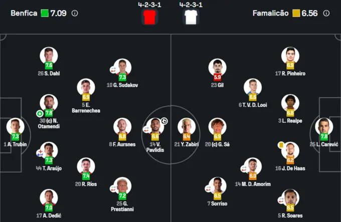 Трубін відіграв весь матч, записавши на свій рахунок два сейви. За версією статистичного порталу WhoScored український голкіпер отримав оцінку 6,5 і це найнижчий бал серед гравців стартового складу лісабонської команди. Водночас SofaScore оцінив його виступ у 7,3 балів.