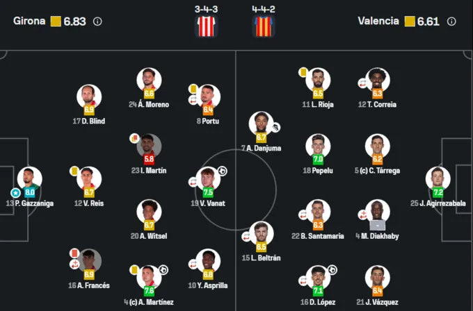 Український нападник каталонського клубу Владислав Ванат провів на полі 68 хвилин і відзначився забитим м'ячем, відправивши м'яч влучним ударом у дев'ятку. Його виступ оцінили досить високо: SofaScore поставив форварду 7,5 бала, а WhoScored – 7,6.