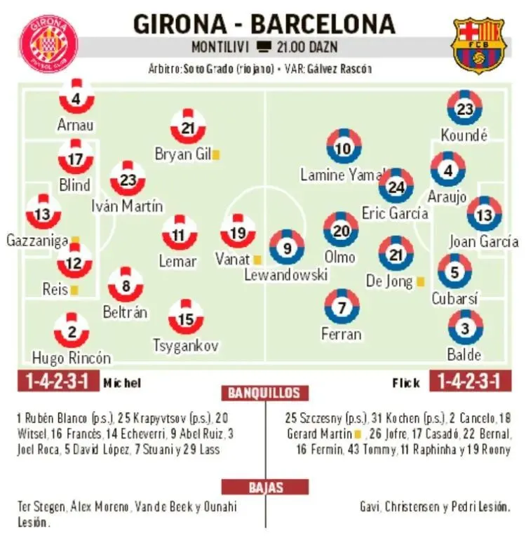За інформацією авторитетного видання MARCA, головний тренер Жирони Мічел Санчес готовий розраховувати на Віктора Циганкова та Владислава Ваната, які можуть розпочати гру з перших хвилин.
