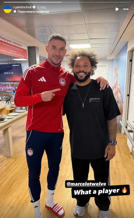 Український нападник грецького Олімпіакоса Роман Яремчук зустрівся з легендарним футболістом мадридського Реалу та збірної Бразилії Марсело.