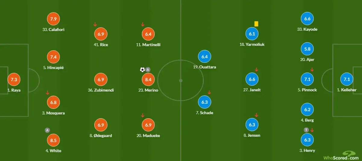 - Брентфорд після 14 матчів посідає 13 місце в АПЛ, маючи в своєму активі 19 очок. Арсенал йде першим (33 бали).