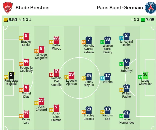 Статистичний портал SofaScore оцінив виступ українського центрального захисника ПСЖ Іллі Забарного у поєдинку дев’ятого туру Ліги 1 проти Бреста (3:0).