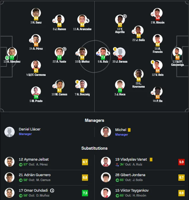 За підсумками цього поєдинку Ванат отримав 5,9 балів від Sofascore, що є однією з найгірших оцінок у складі каталонської команди, а Циганков відіграв на середні 6.6.