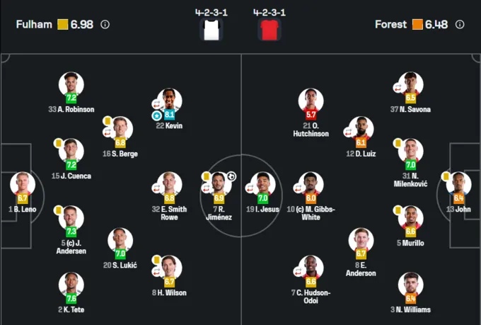 Найкращим гравцем матчу за версіями обох ресурсів було визнано вінгера Фулгема Кевіна, який раніше виступав за донецький Шахтар. Він отримав високі оцінки - 8,1 від SofaScore та 7,7 від WhoScored.