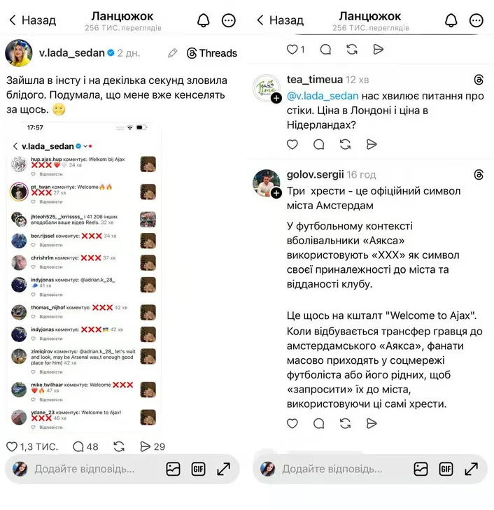 Тому для фанів Аякса такі позначки в коментарях – швидше дружній знак приналежності до клубу та міста, ніж будь-яка критика. У підсумку Владу заспокоїли вболівальники з України, які пояснили значення хрестів і те, чому амстердамські фанати так активно їх використовують.