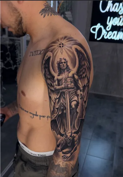Лівий захисник київського Динамо Владислав Дубінчак зробив нове татуювання, на якому ангел перемагає демона, символізуючи боротьбу добра і зла.