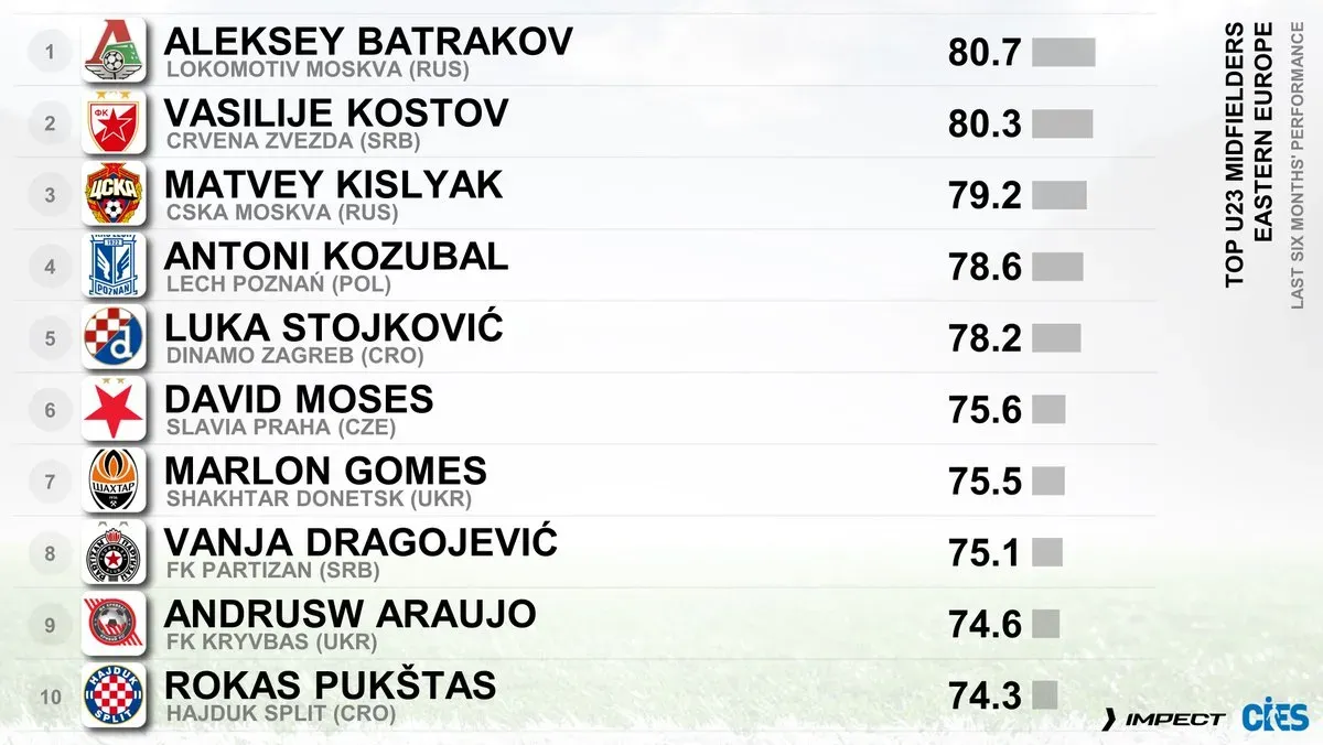Рейтинг найкращих молодих хавбеків Східної Європи