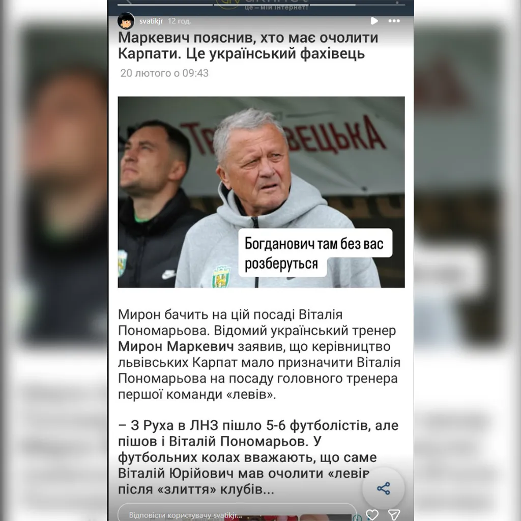 «Богданович, там без вас розберуться»: син Козловського відреагував на заяву Маркевича про тренера Карпат
