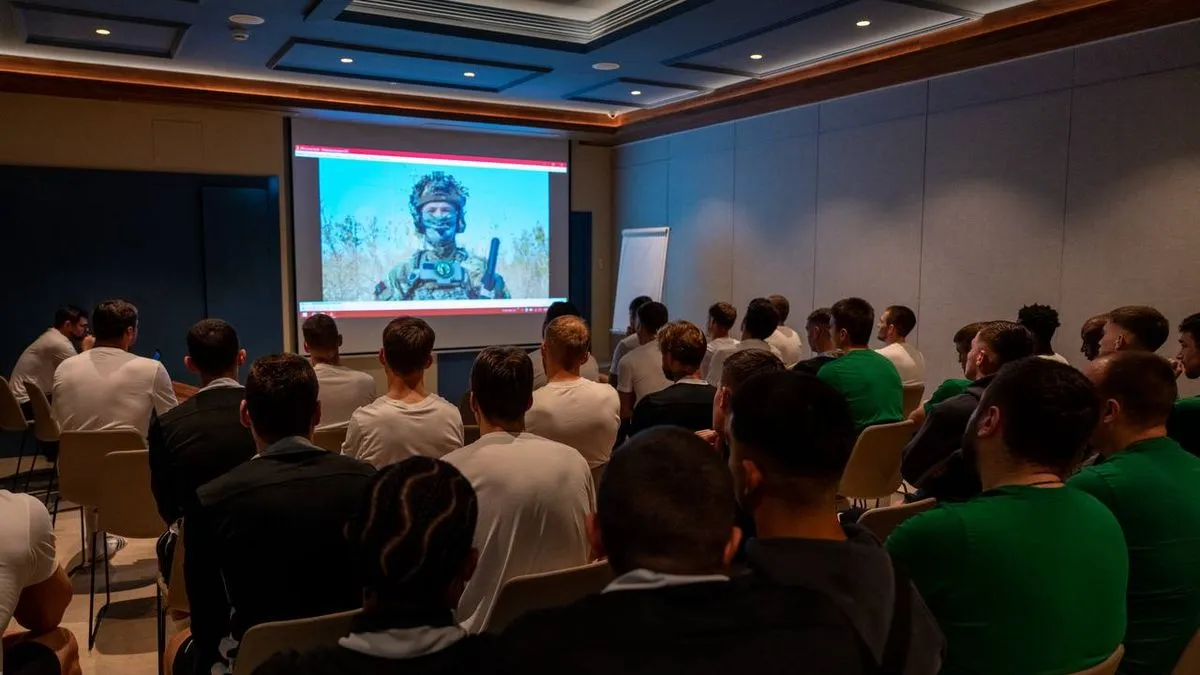 Під час зустрічі футболістам і тренерському штабу Полісся було показано відеозвернення від українських військових, які нині захищають країну на передовій. Про це повідомляє пресслужба житомирського клубу.