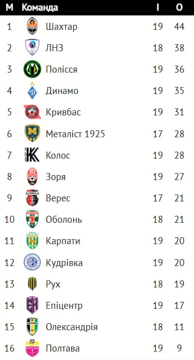 Динамо скоротило до мінімуму дистанцію до трійки: оновлена таблиця УПЛ після центрального матчу 19-го туру