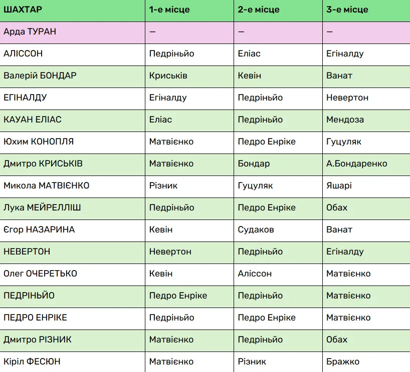 Варто зауважити, що головний тренер Шахтаря Арда Туран єдиний з-поміж своїх колег по цеху не голосував, мотивувавши своє рішення тим, що не працював у нашому чемпіонаті весь 2025 рік.