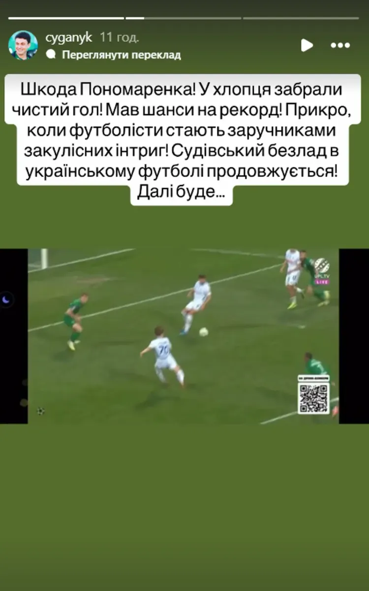 «Шкода Пономаренка! У хлопця забрали чистий гол! Мав шанси на рекорд! Прикро, коли футболісти стають заручниками закулісних інтриг! Суддівський безлад в українському футболі продовжується! Далі буде...»