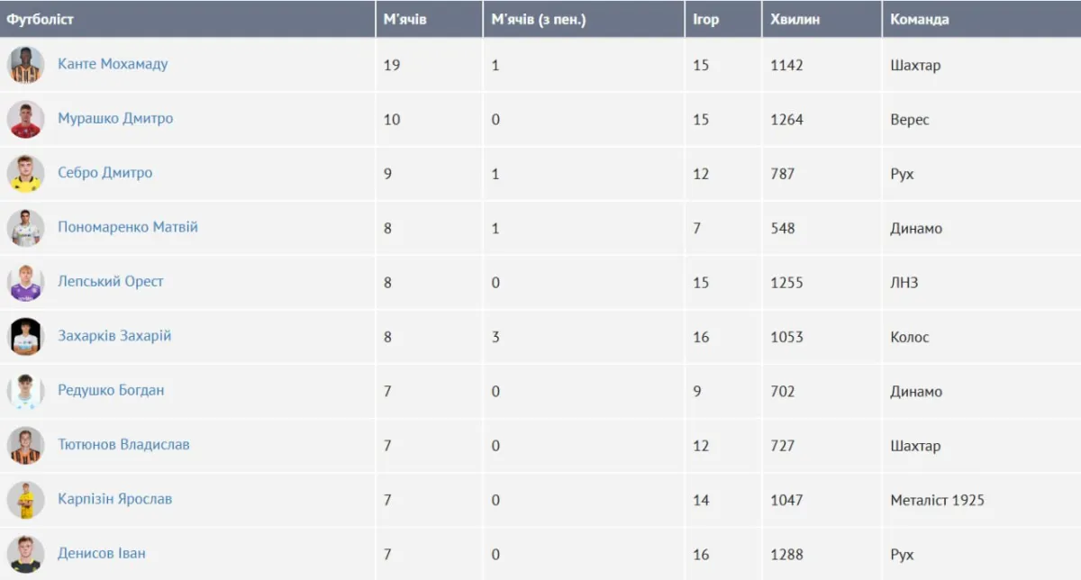 Таким чином стало відомо, що найкращим бомбардиром після 16 турів турніру є гамбійський форвард Шахтаря Мохамаду Канте.