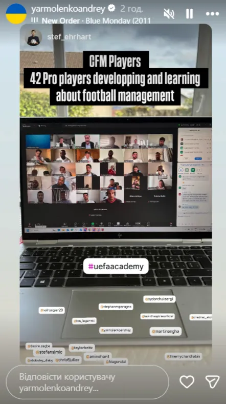 Досвідчений хавбек Динамо поділився фото, на якому видно, що він активно навчається футбольному менеджменту та проходить освітню програму в УЄФА. Андрій Ярмоленко навчається в академії УЄФА, аби здобути сертифікат із футбольного менеджменту.