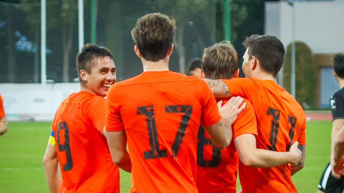 Гравці Олександрію тішаться голу у контрольному матчі на НТЗ. Фото: ФК Олександрія