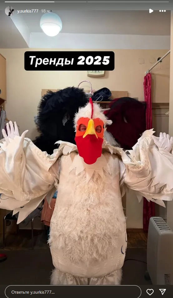 У своєму Instagram дівчина опублікувала фото у величезному костюмі курки. Цей образ вона жартома назвала «трендом 2025 року».