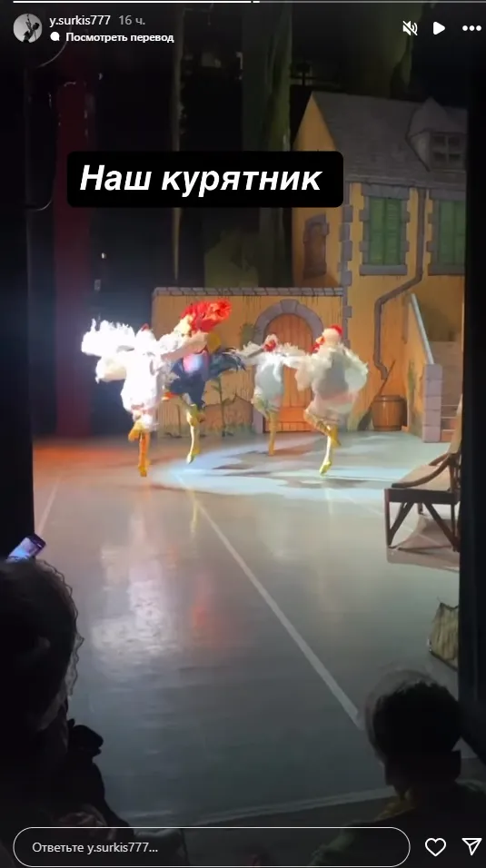 Згодом Яна поділилася світлиною, на якому люди у схожих курячих костюмах виступають на сцені, і прокоментувала його словами: