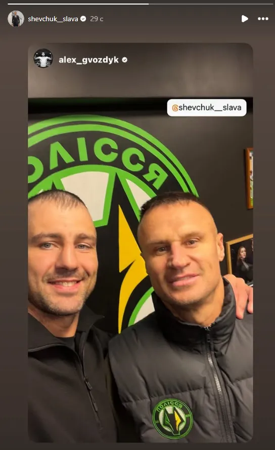 Також спільну фотографію з легендою спорту зробив колишній лівий захисник збірної України В'ячеслав Шевчук, який наразі є спортивним директором Полісся.