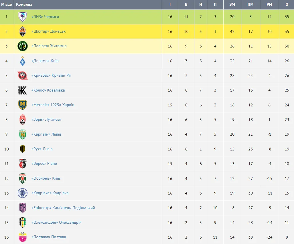У неділю, 14 грудня, перемогою Шахтаря над Епіцентром завершився 16-й тур української Прем'єр-ліги 2025/26 та літньо-осіння частина чемпіонату відповідно.