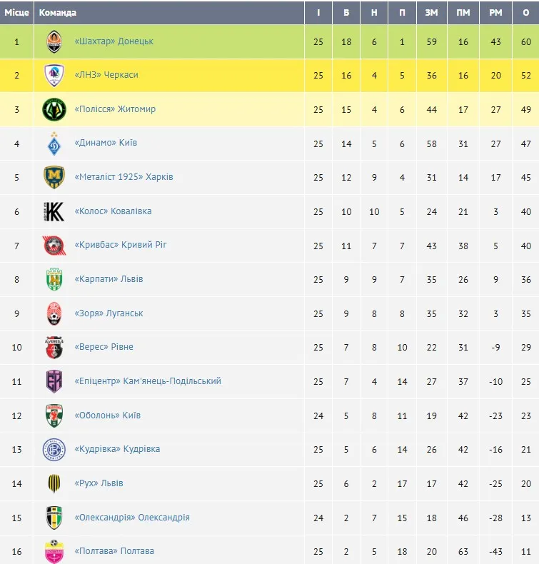 Шахтар пішов у відрив від ЛНЗ, а Динамо зіграло матч з 11-ма голами: турнірна таблиця УПЛ після 25-ти турів