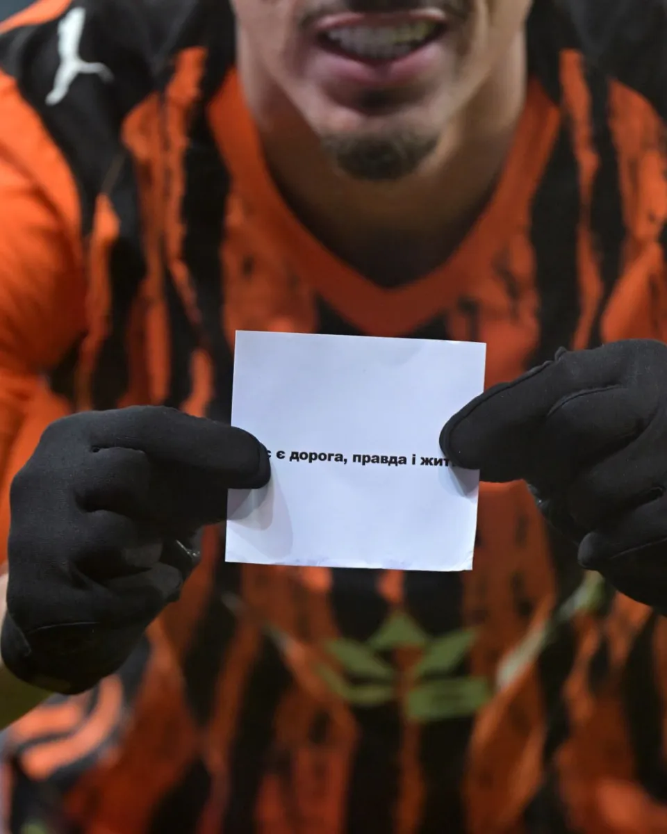 На третій хвилині рахунок відкрив бразильський хавбек Шахтаря Марлон Гомес. Після голу він показав папірець з вдячністю богу.