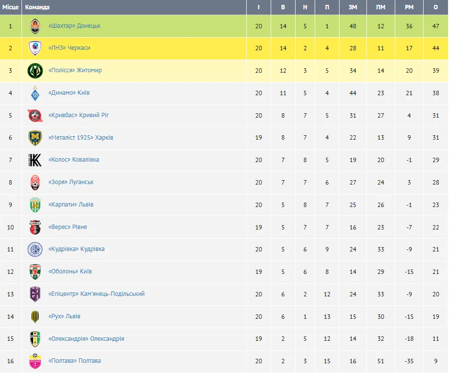 Шахтар знову обійшов ЛНЗ, а Полісся випереджає Динамо: оновлена турнірна таблиця УПЛ після 20-го туру