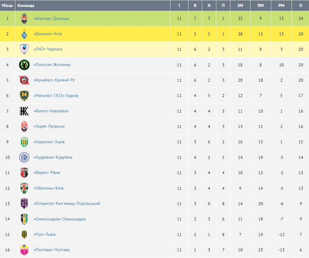 У турнірній таблиці УПЛ неймовірна щільність: ситуація у чемпіонаті після 11 туру і поразки Динамо від Шахтаря