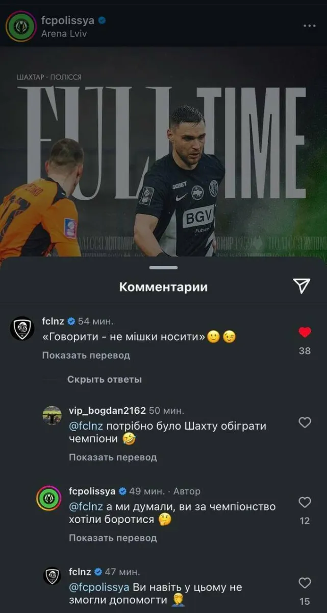 «Ви навіть у цьому не змогли допомогти»: Полісся та ЛНЗ вступили в гарячу перепалку після гри з Шахтарем