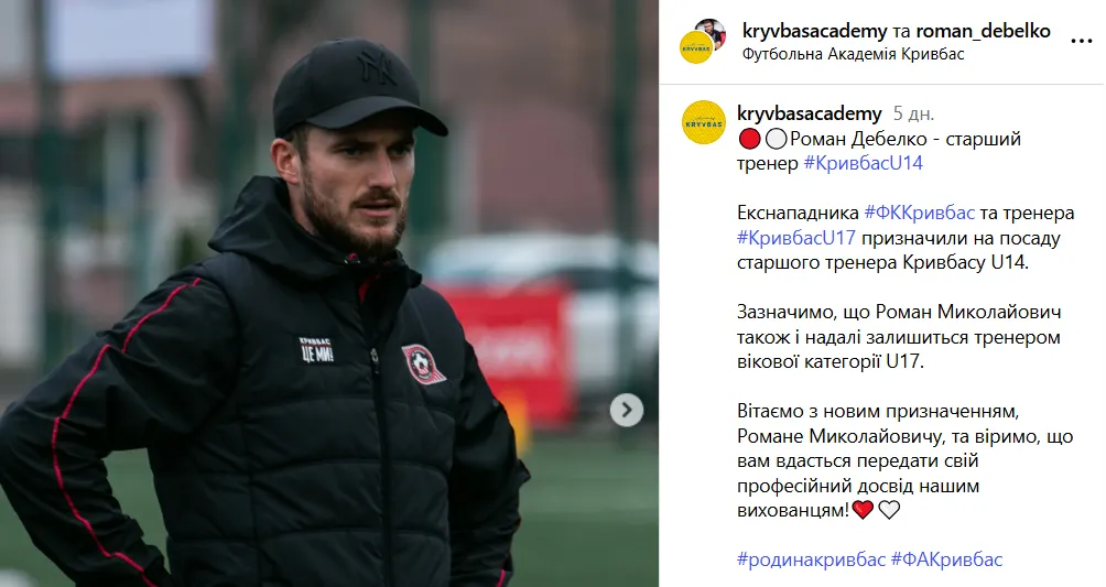 Про це у власному Instagram оголосила академія криворізького клубу.