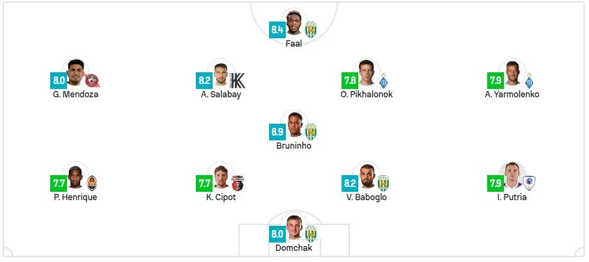Найвищу оцінку серед гравців збірної отримав бразильський легіонер Карпат Бруніньйо (8,9 бала). Його партнери Фал, Бабогло та Домчак також мали високі оцінки. 8,2 бала отримав автор голу Колоса у ворота Зорі Салабай.