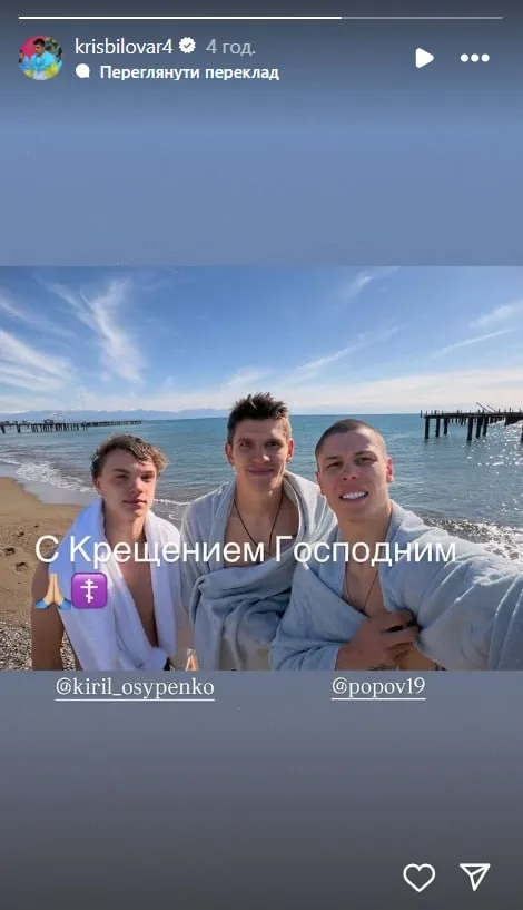 Компанію Біловару склали досвідчений центрбек Денис Попов та молодий півзахисник Кирило Осипенко. Крістан підписав світлину доволі лаконічно, привітавши з християнським святом.